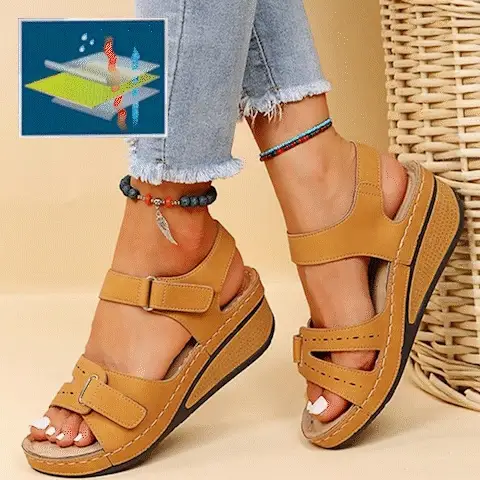Our wedge heel sandals with soft bottoms are designed to prevent foot pain by optimizing body movements and promoting proper alignment. Featuring a unique design and cushioned soles, they offer both support and comfort to your feet.