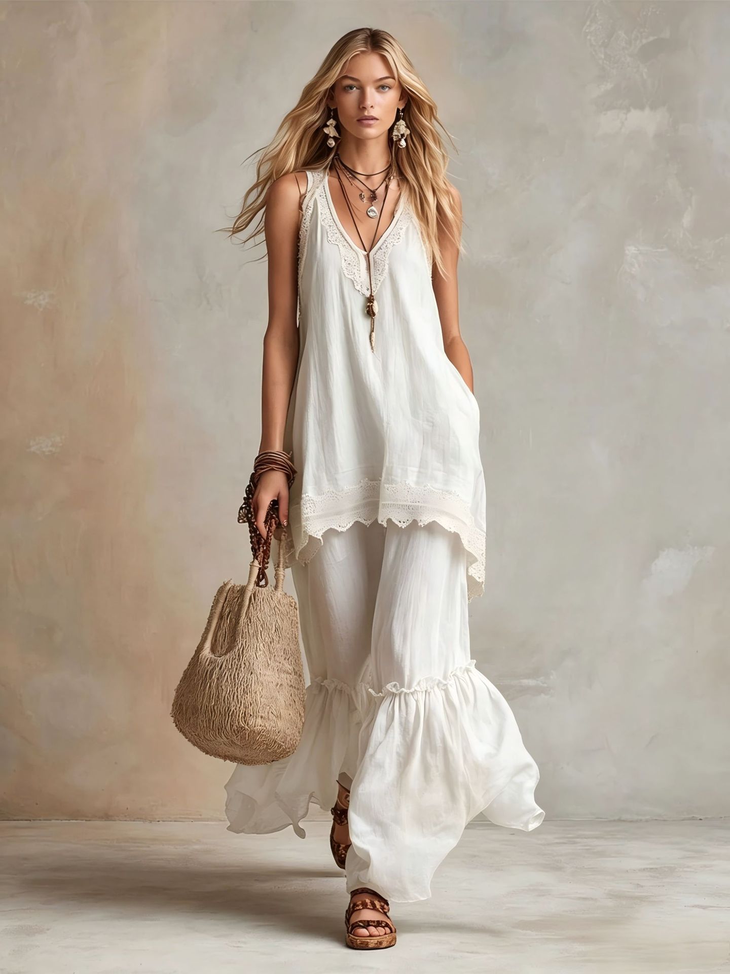 2.Design: Features contrasting lace trim and ultra-wide legs