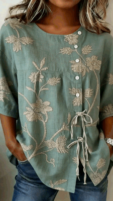 New Arrivals🔥 Women'S Casual Vintage Flower Art Print Printed Linen Cotton Shirt