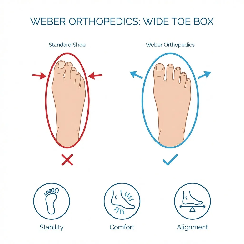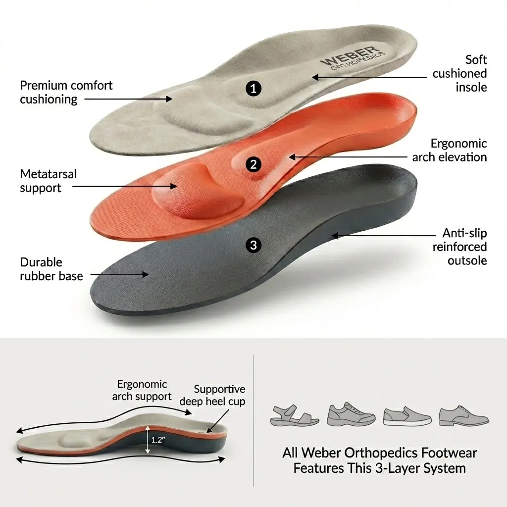The stability and wide toe box allow your feet to extend, flex, and stabilize naturally, helping to reduce pressure on your joints and improve posture. Whether you're strolling around the neighborhood, traveling, or staying active, Weber Orthopedic Footwear keep your body aligned for lasting stability and balance.