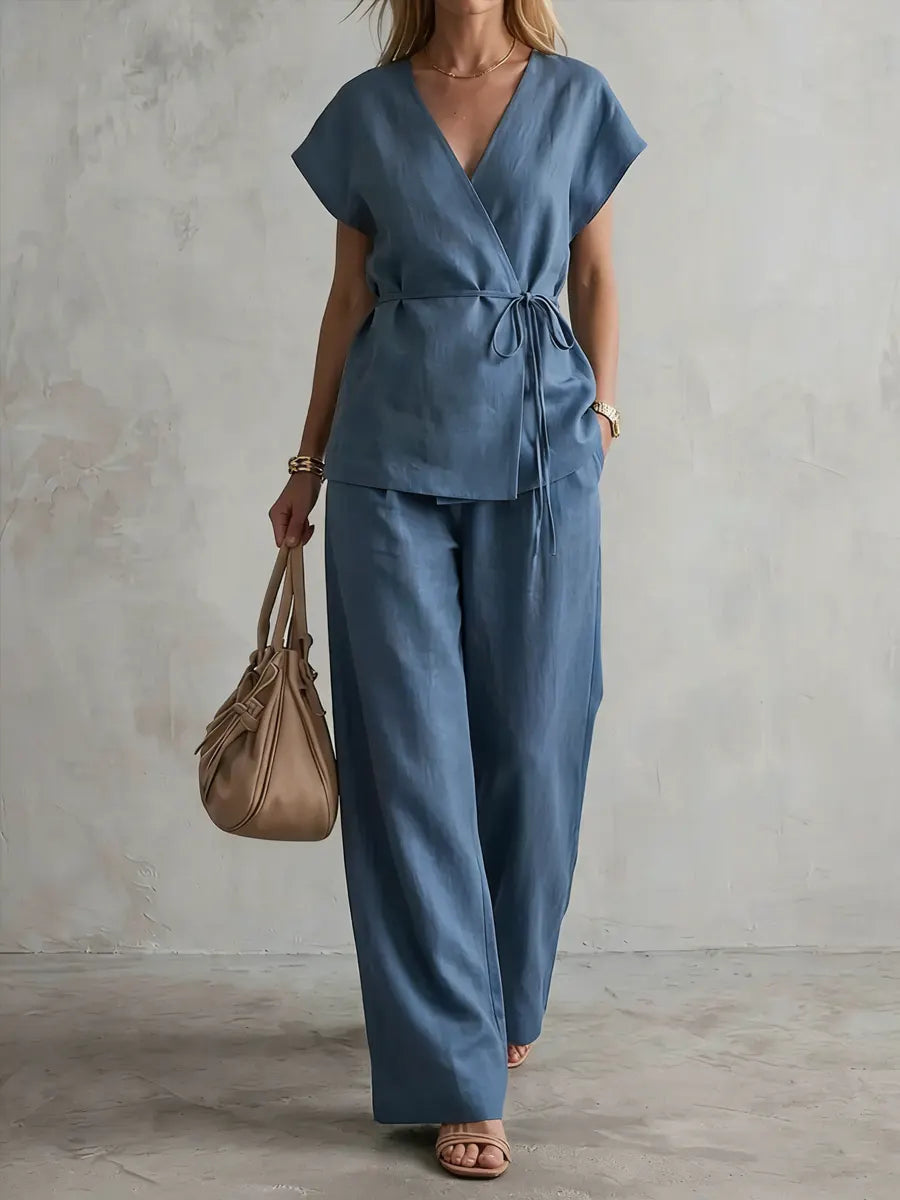 Women's Minimalist Cotton And Linen Wide-leg Pants Set